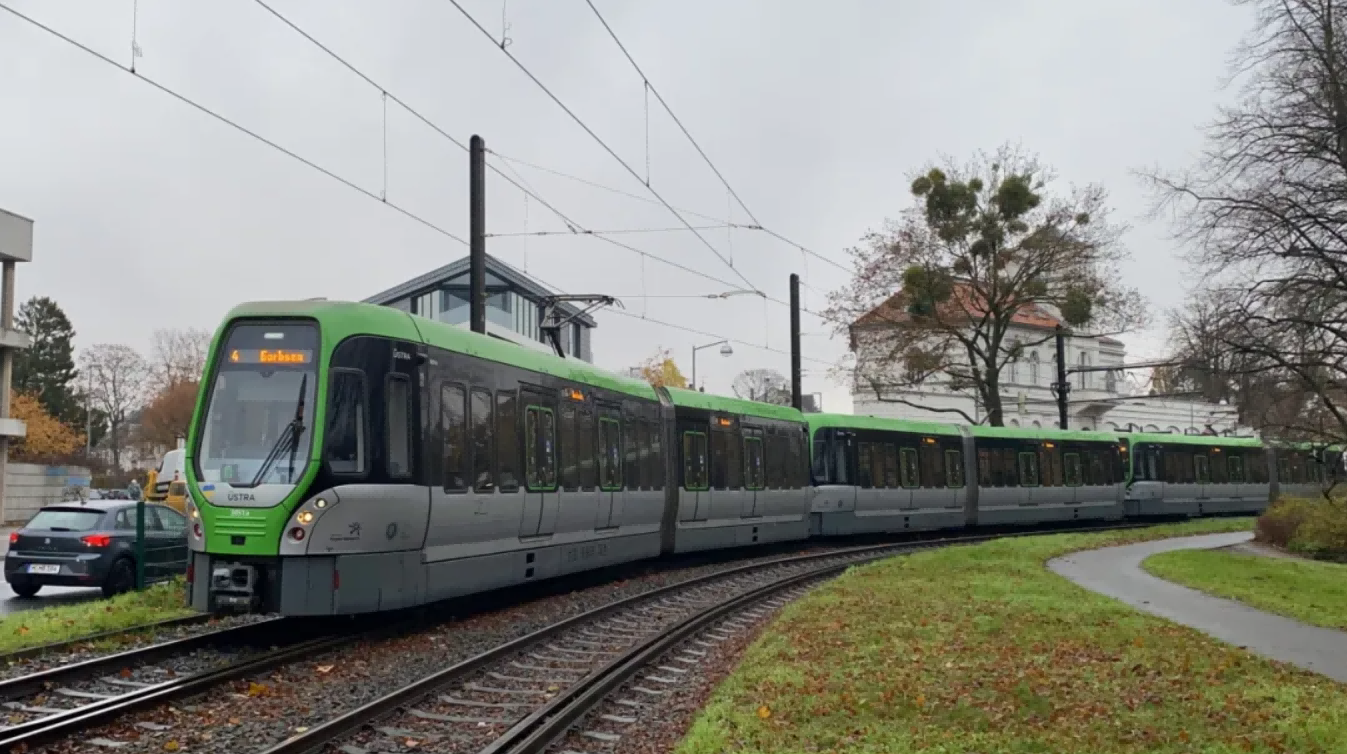 德国的有轨电车基本所有轨道都铺设在马路上,因此从这一角度来看,它也可以被称之为“路面电车”(Rain)。有轨电车需要像公交车那样等红绿灯,不过也并不是完全没有独立路权。在郊区一些地方为了保证运行速度,它可以快速通行。