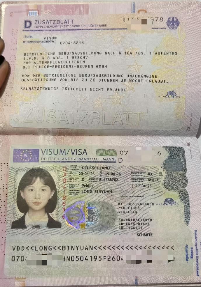 娄底职业技术学院护理专业2019级的徐莉雯同学和2020级的龙彬源同学,黄静同学已拿到签证,即将赴德国,开启崭新的德国“双元制教育”学习和生活。