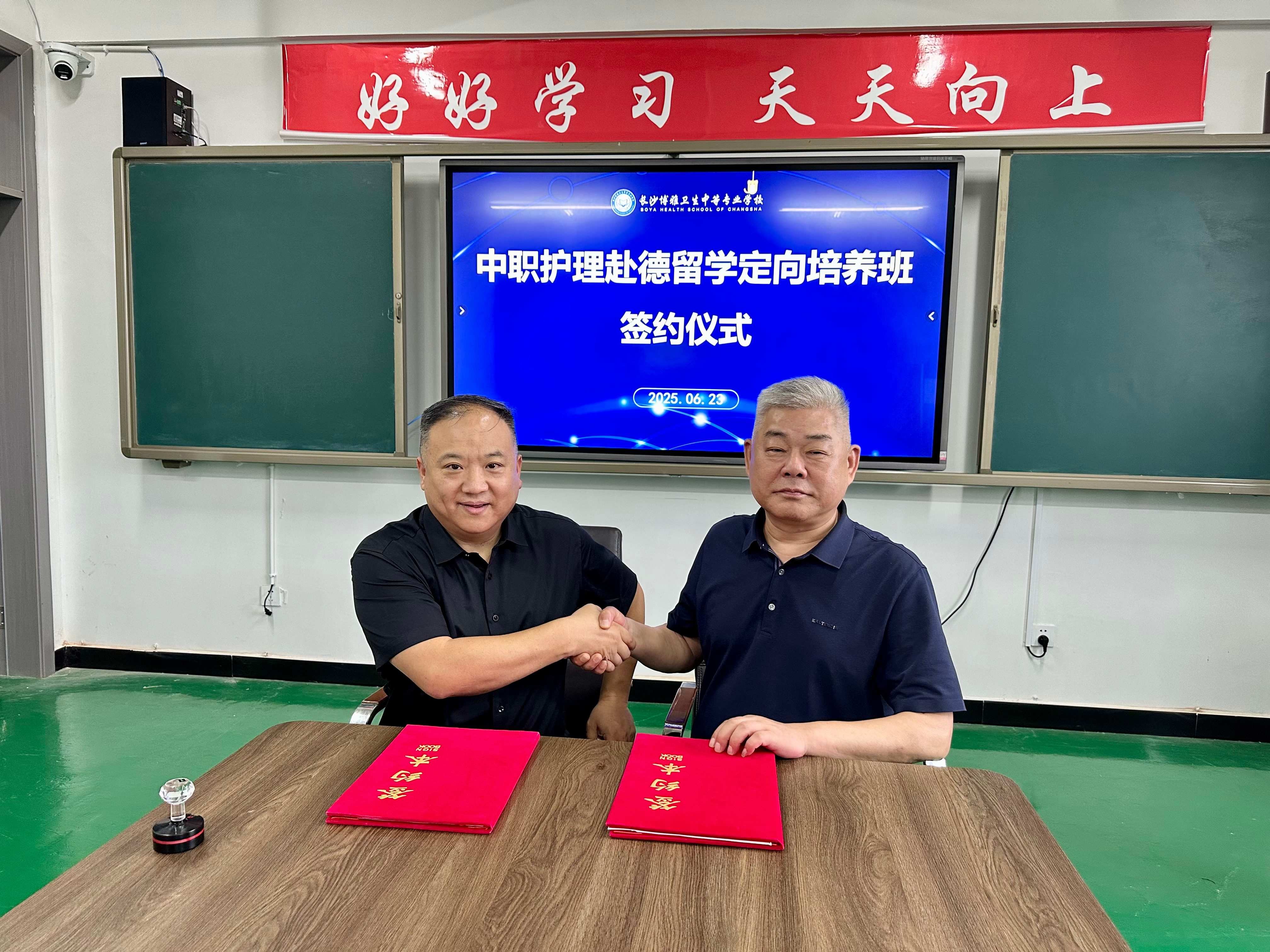 2026年6月23日上午,湖南克劳斯文化教育交流有限公司(简称湖南克劳斯)与长沙博雅卫生中等专业学校(简称博雅卫校)在博雅卫校会议室隆重举行中职护理赴德留学定向培养班签约仪式。湖南克劳斯董事长李向京博士,博雅卫校金校长等出席会议。