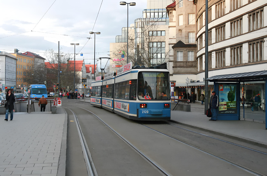 德国的有轨电车基本所有轨道都铺设在马路上,因此从这一角度来看,它也可以被称之为“路面电车”(Rain)。有轨电车需要像公交车那样等红绿灯,不过也并不是完全没有独立路权。在郊区一些地方为了保证运行速度,它可以快速通行。